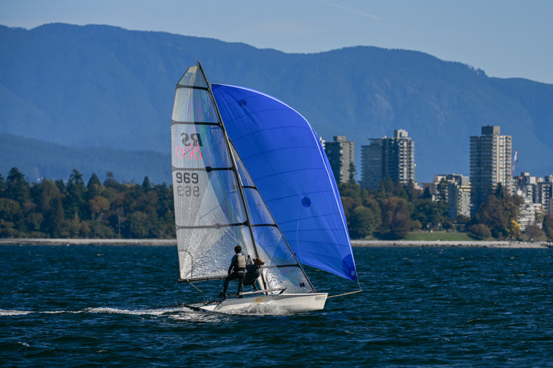 Josh and Nina blast downwind on a UBC Sailing Club RS 800 during Penguin Cup action Oct 8.